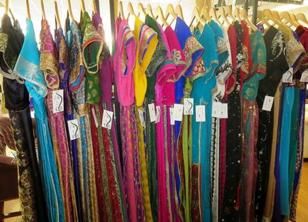 We also have matching costume jewelry and accessories. The jewelry includes a set (necklace, ear-rings, and tikka), just the ear-rings, and Bangles. Accessories include fancy clutch bags and juttis.